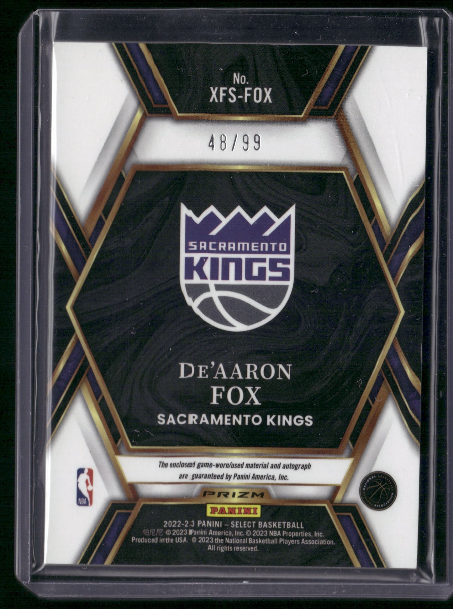 2022-23 Select X Factor Memorabillia Signatures De'Aaron Fox Auto /99