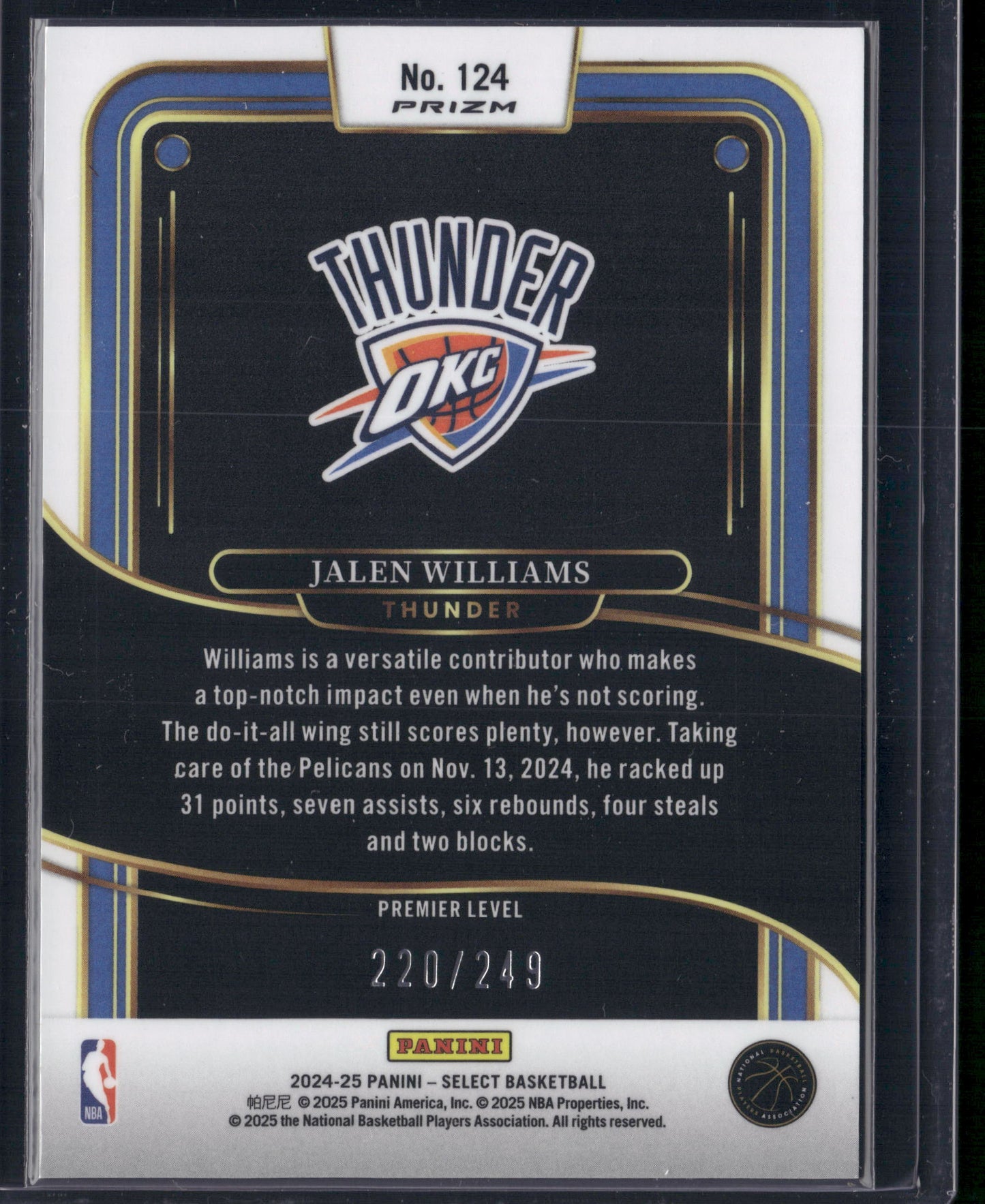 2024-25 Select Premier Level Red /249 Jalen Williams