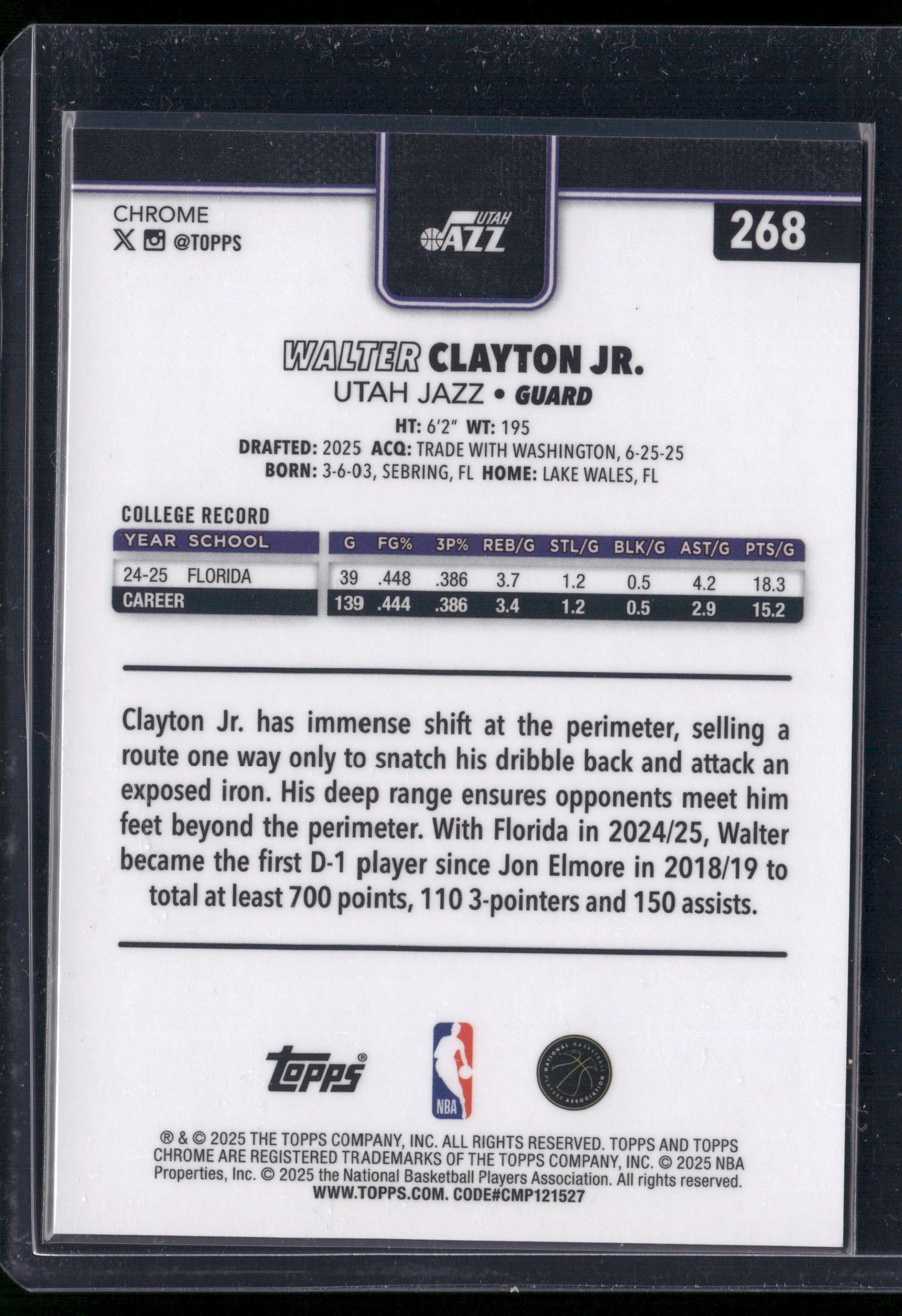 2025-26 Topps Chrome Walter Clayton Jr RC /50 Rookie Gold Geometric Refractor