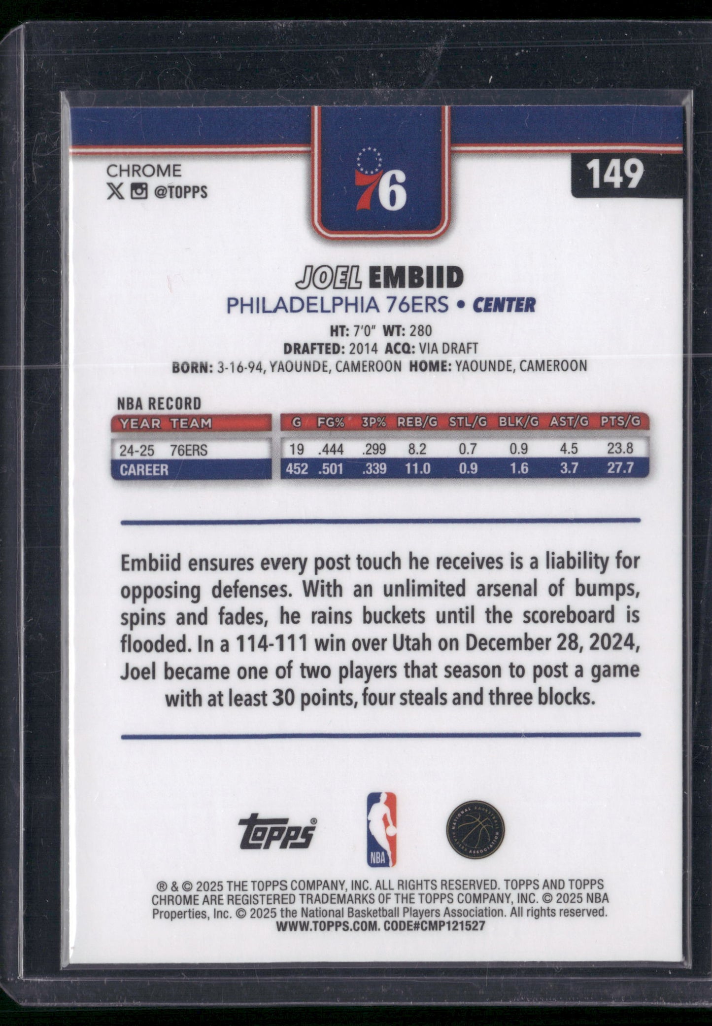 2025 Topps Chrome Basketball Refractor Joel Embiid