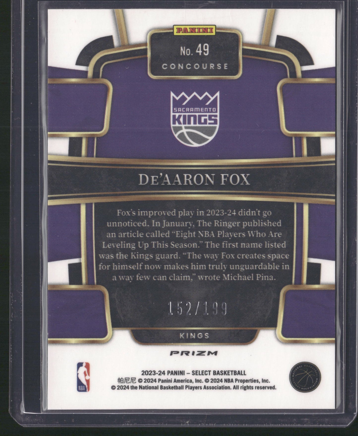 2023-24 Select Concourse Red /199 De'Aaron Fox
